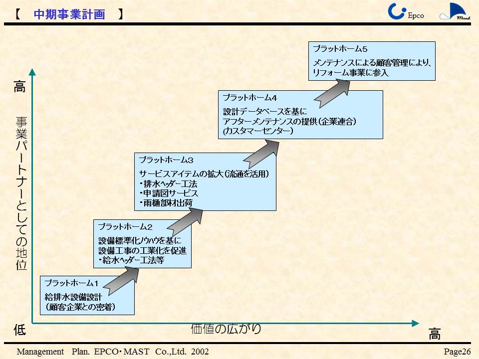 プラットホーム2段階では、給排水設備工事の規制緩和により、設備設計の領域に限定されていたサービスを、設備工事の領域まで踏み込んでサービス展開することを掲げております。