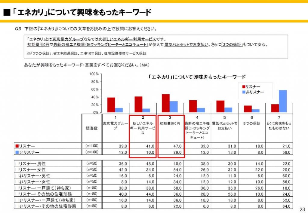 3.また、「新しいエネルギー利用サービス」についてはリスナー⇔非リスナー比較でもっとも差が大きく約4倍のスコア差がつきました。