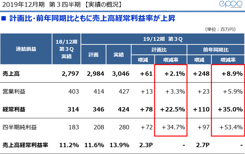 本日、エプコの2019年12月期第3四半期決算について発表しましたので、決算概要をご説明させていただきます。