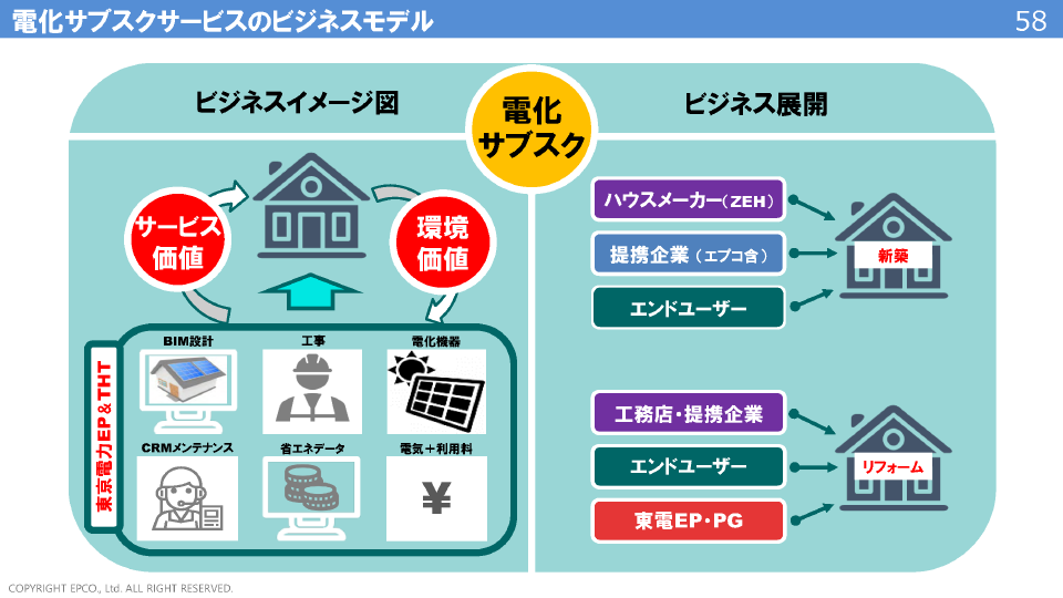更に東京電力エナジーパートナー社においては、「エネカリ」の定額利用料と電気料金メニューをパッケージにして、エンドユーザーにとって、よりサービス価値の高い商品を提供していくことを計画しております。