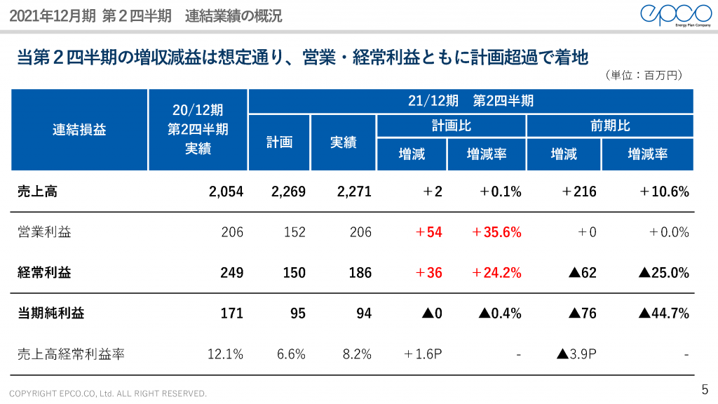 本日、エプコの2021年12月期第2四半期決算について発表しましたので、決算概要をご説明させていただきます。