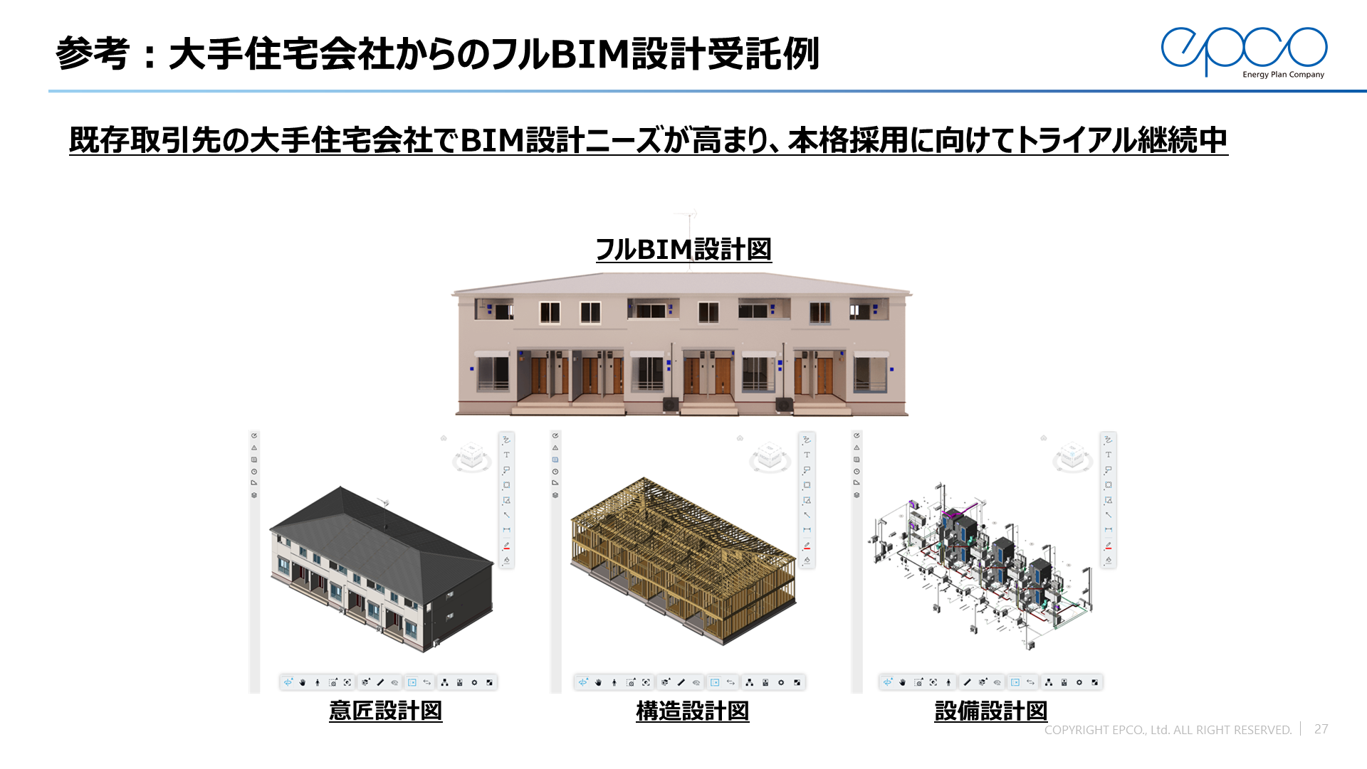 また、顧客についても、3次元フルBIM設計サービスを提供することで、戸建中心の大手ハウスメーカーから、賃貸住宅や店舗などを手掛ける新規顧客、ゼネコンなどの開拓で、売上拡大を図ることが可能です。