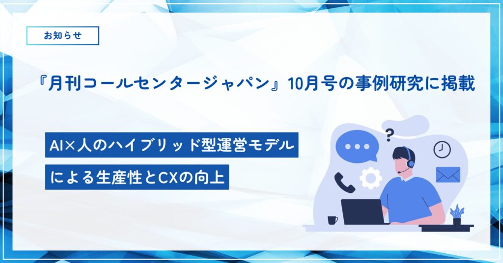 【メディア掲載】『月刊コールセンタージャパン』10月号の事例研究に掲載~AI×人のハイブリッド型運営モデルにより生産性とCXを向上~