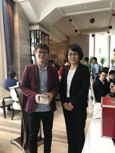 ビンゴが終わって一息ついた司会者叶さん・陳さんと比嘉部長代理