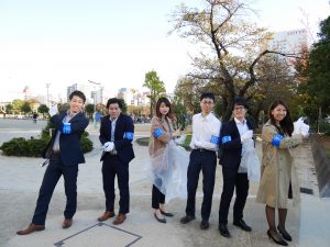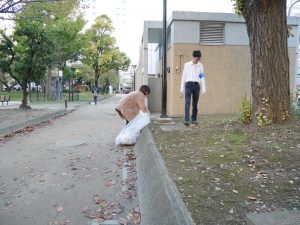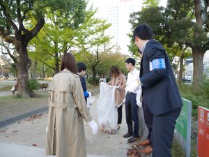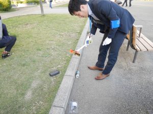 広い錦糸公園をみんなで声を掛け合い協力しながら、