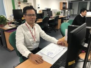 (写真左)比嘉さん「業務移管達成に向け全力で頑張ります!」