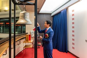 いよいよ上場記念の打鐘セレモニー