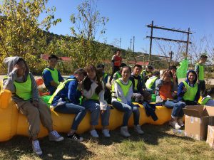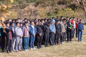 閉会式。広富総経理から挨拶をいただき、最後に山をバックに皆で全体写真!(ここは冬はスキー場になります)
