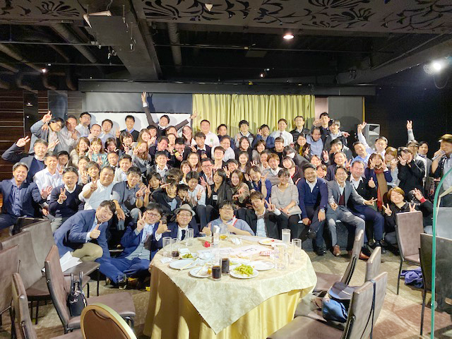 参加人数は104名、率にするとなんと70%という驚異の数字をたたき出した合同忘年会。当日の様子をお届けします!