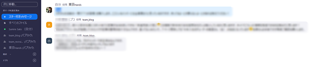 メッセージが流れがちなときはスターを付け、タスクが終わったら外す