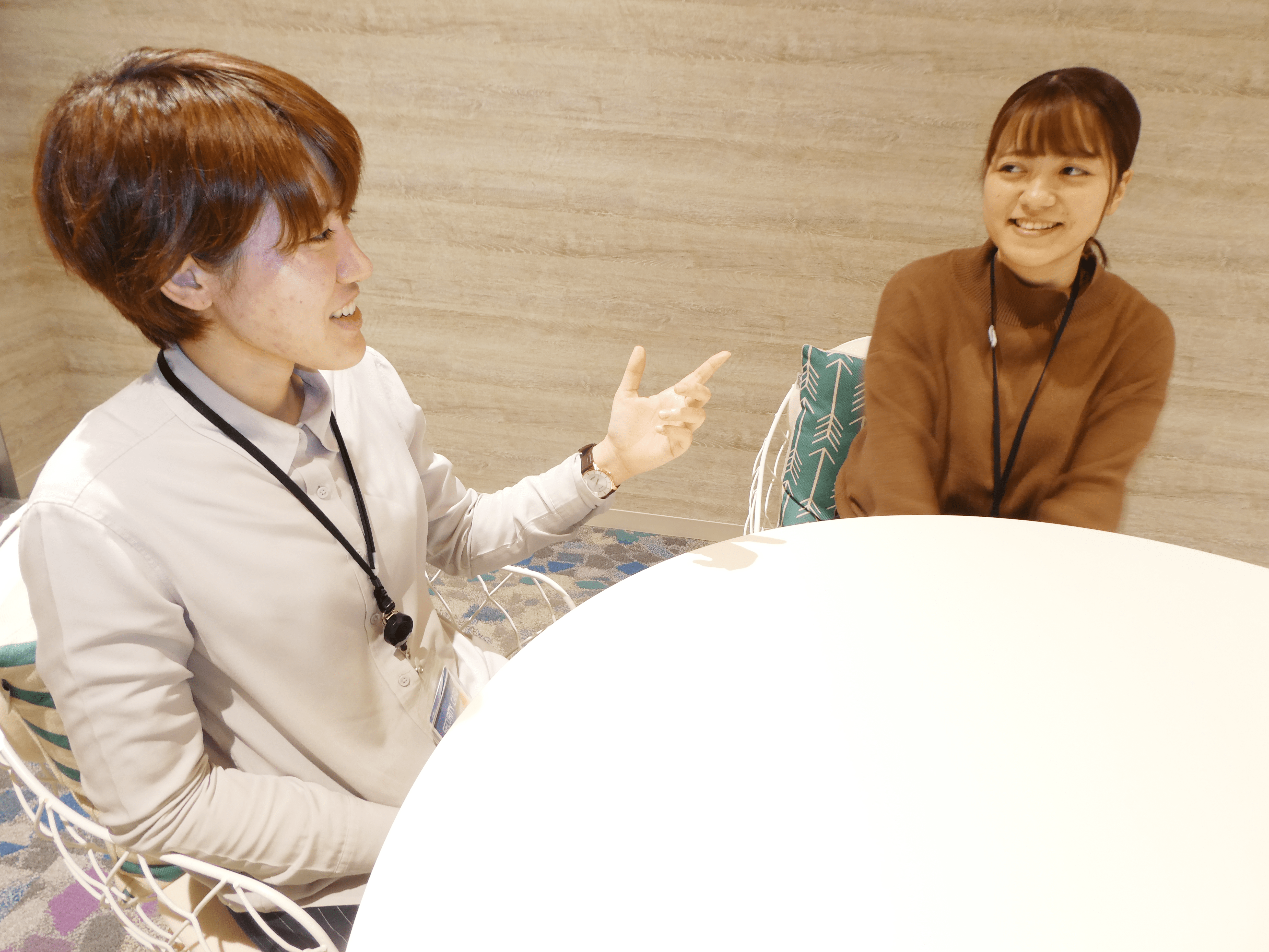 仲宗根さん:入社して初めてのことばかりで不安でしたが、チューター制度での面談を通して受電業務での課題を見つけ、さらに先輩からのアドバイスを頂いて実務に活用することが出来てよかったです。また、岡田さんがフランクに話してくれたので、私も話しやすくて楽しかったです。