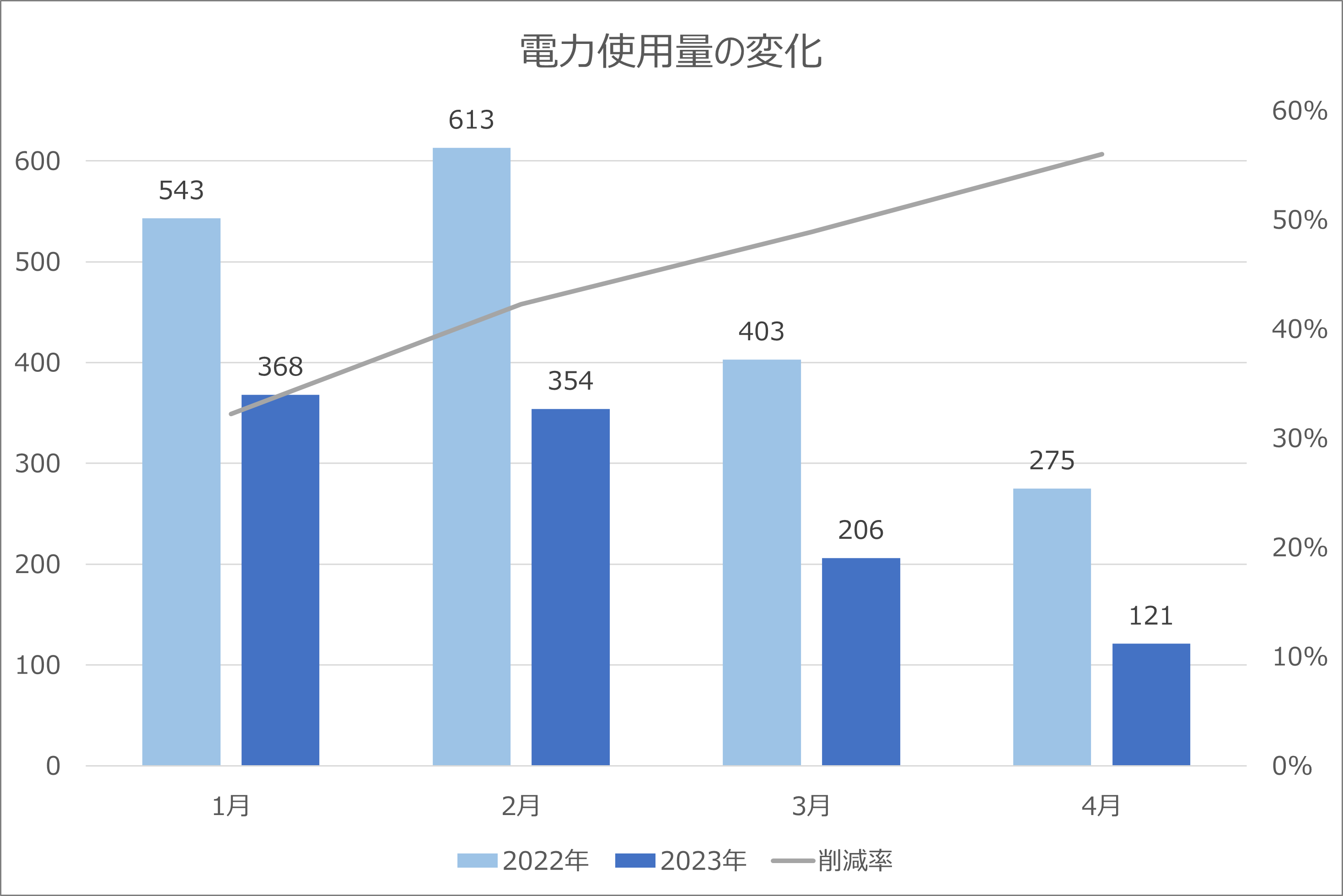 ▲使用量が大幅に減っており、4月の削減率はなんと56%!