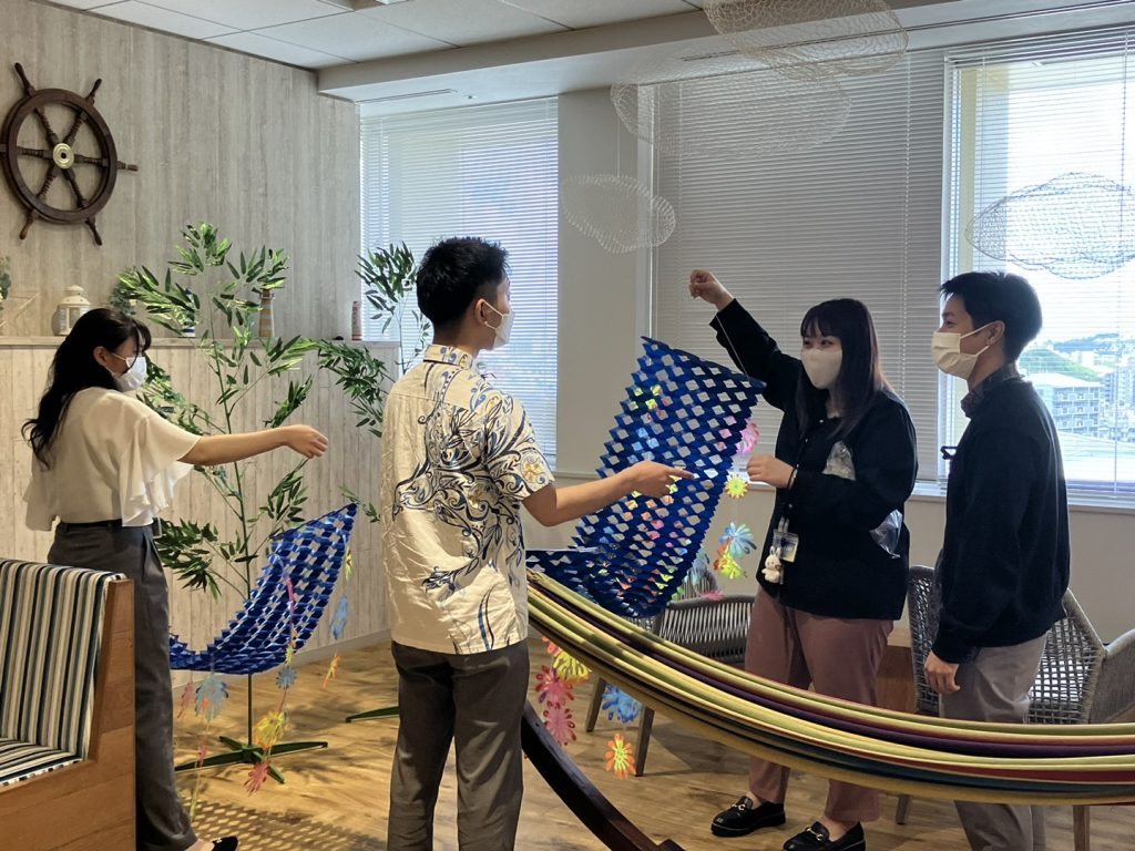 こんにちは。沖縄エプコの平良大空(H-M事業部)と平良昭一郎(D-TECH事業部)です。沖縄エプコでは、繁忙期中の激励と社員同士の交流を深めることを目的に、夏の社内イベントとして「七夕まつり」を実施いたしましたので、その様子を紹介いたします!
