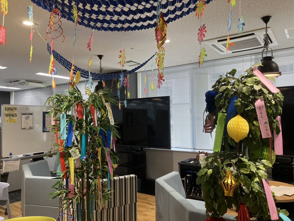 この夏は、H-M事業部の「ハマチ会」とD-TECH事業部の「Hand-S」が2023年最初のイベントとして「七夕まつり」を合同企画しました!「七夕まつり」期間中は多目的スペースである「エプコデッキ」を七夕仕様に装飾。社員は短冊に思い思いの願い事を書き込み、飾ります。