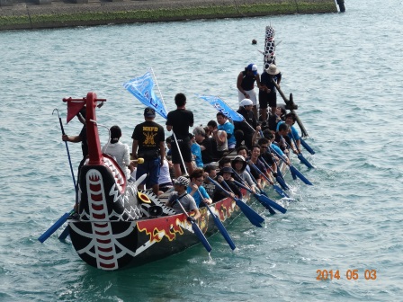地方のハーリーとは違い、大型の爬龍船(はりゅうせん)を使用するため、ダイナミックなレースが売り物!(「たびカタログ」引用)