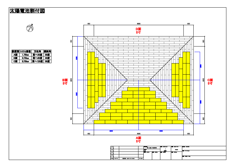 エプコで開発した太陽光パネル割付用CADを使用して、パネル割付図を作成します。