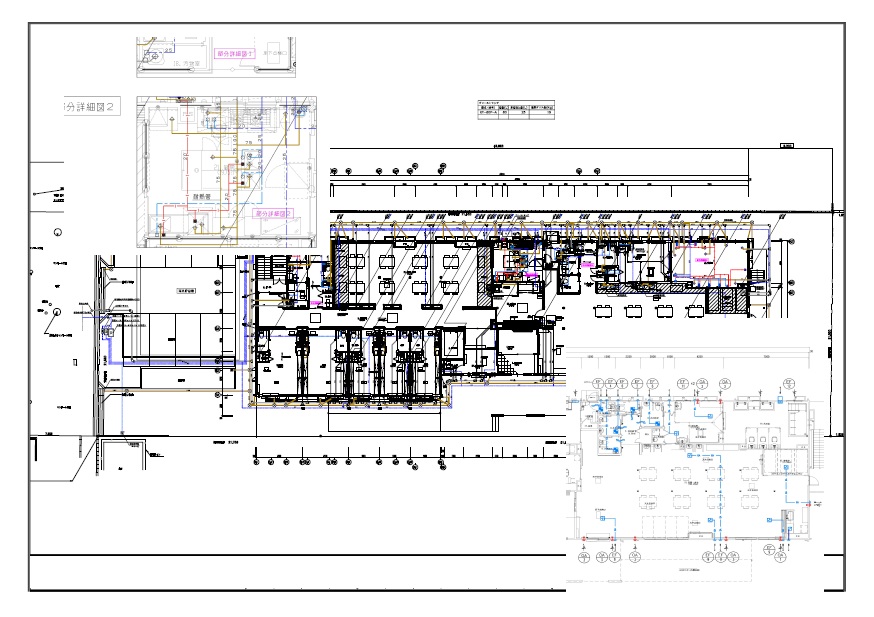 サ高住もハウスメーカー様が今までやっていない建物です。医療系の設備・機械付浴室・厨房・食堂・ボイラーといった一般住宅にはない設備が多いため、我々のチームの建築設備士が担当して打合せをおこない、チーム内で図面を作成しています。