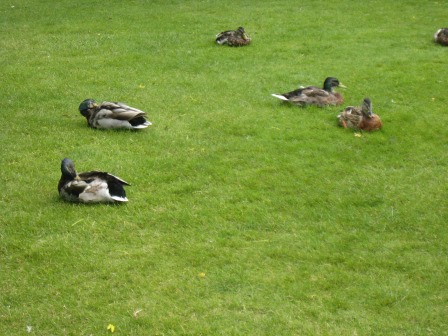 カレッジ内に大きな川があるためか、カモが自由に生息しています。
