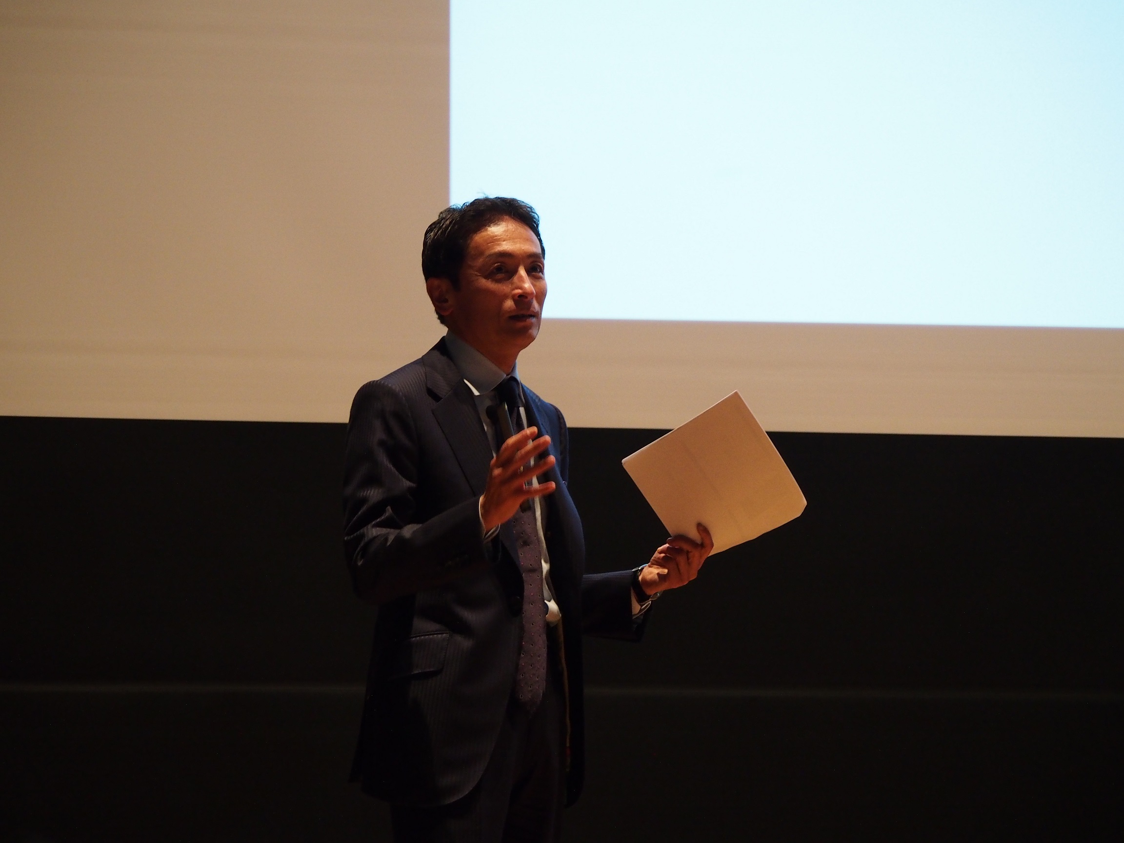 富澤執行役は沖縄にいるため、録音した音声での発表となりました。