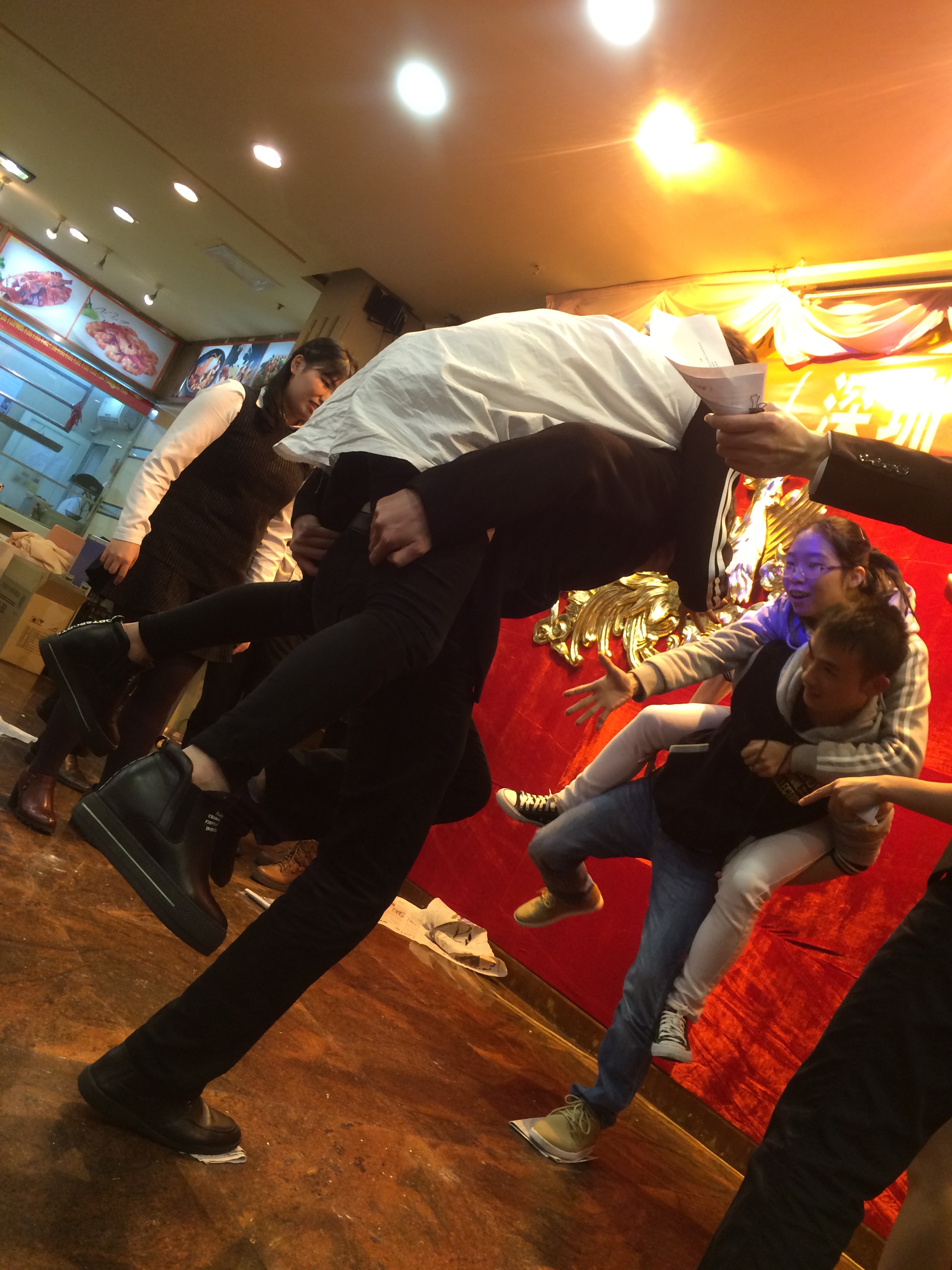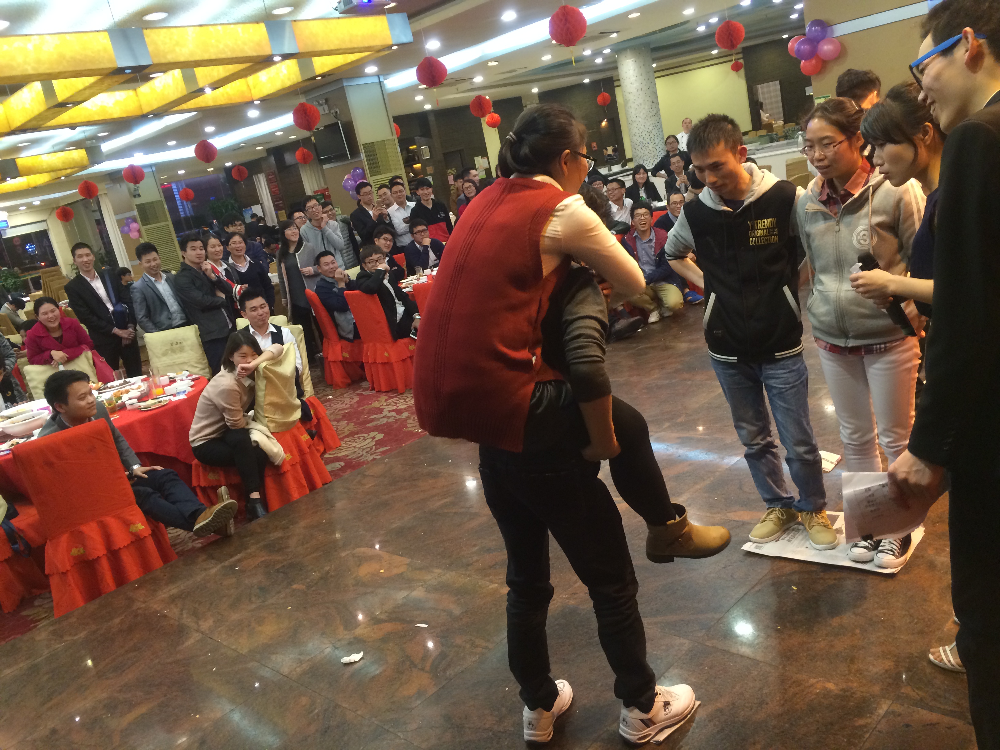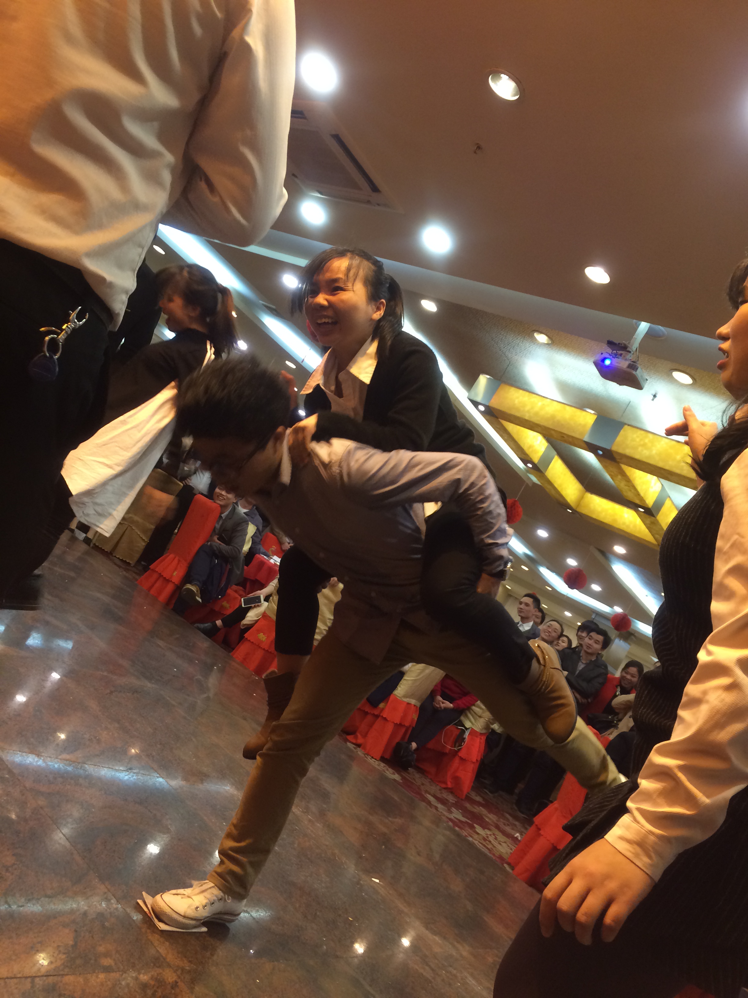 2つ目のゲームは『石頭箭頭布 大PK(紙乗りじゃんけん)』
