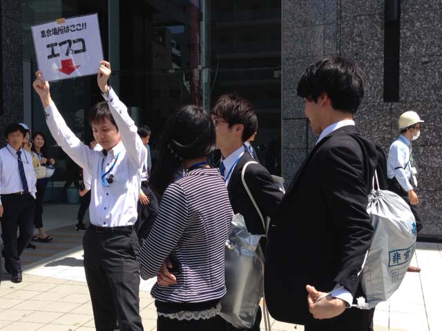 本日、東京オフィスが入っているオリナスタワーで防災訓練がありました。