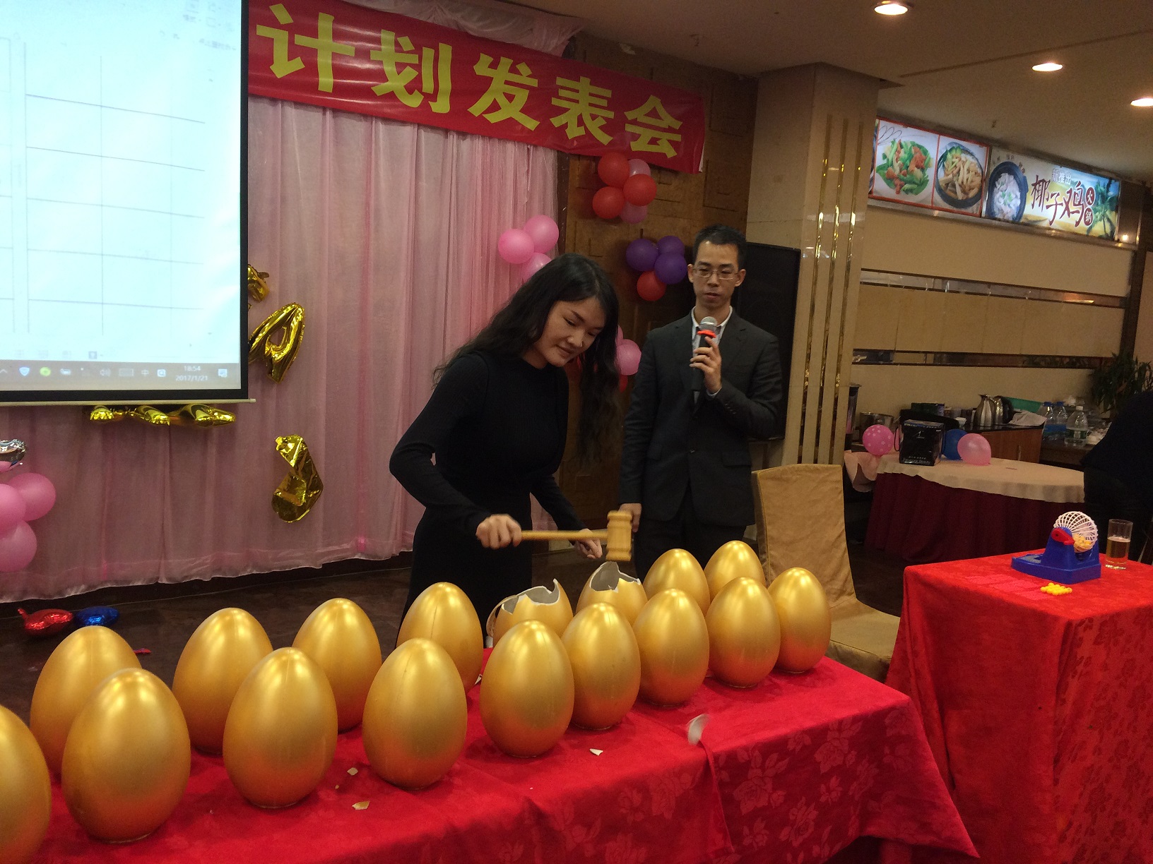 こちらも恒例!?当った人はハンマーでタマゴを割ります。