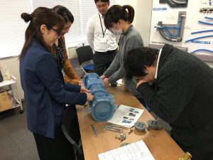 前澤化成工業様より機材を持ち込んで頂き、製品の機能を学びました。